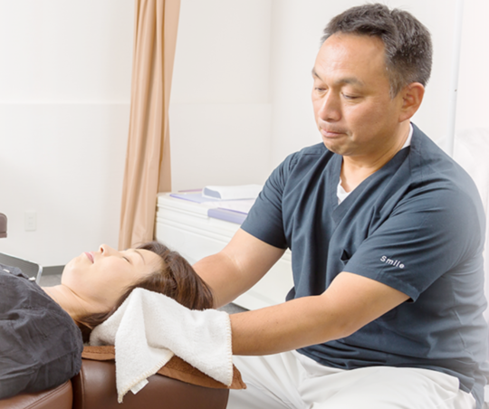 当院の施術者は柔道整復師国家資格を取得し、さらに毎月の勉強会や研修会に積極的に出席し、常に技術の向上に努めていきます。スマイルアップ整体は、技術の向上が皆様の痛みや悩みを改善し、ご満足いただけるような本物の整体を提供いたします。